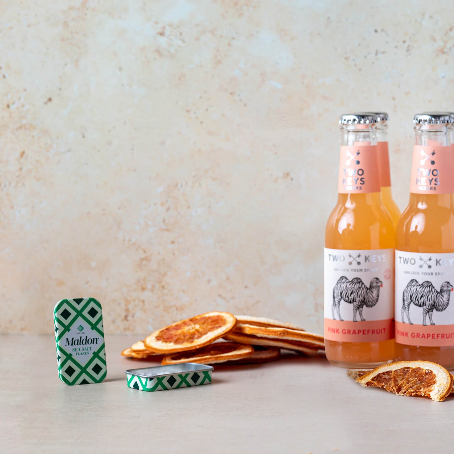 Pink Grapefruit - Two Keys (4x 200ml) + Maldon Salt Pinch Tin + Grapefruit Garnish